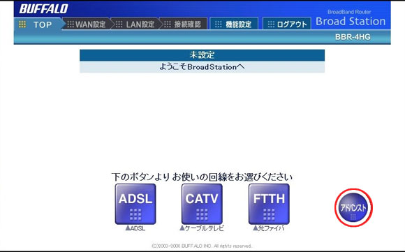 | 3. | TOP画面表示後、[アドバンスト(詳細設定)]をクリックしてください。