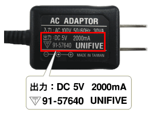 | ACアダプタ(製品に付属) ※型式:91−57640 | ||||||||||||||||||||||