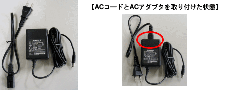 【製品本体および交換対象ACアダプタの確認方法】 製品本体底面ラベルとACアダプタのラベルでご確認いただけます。 |